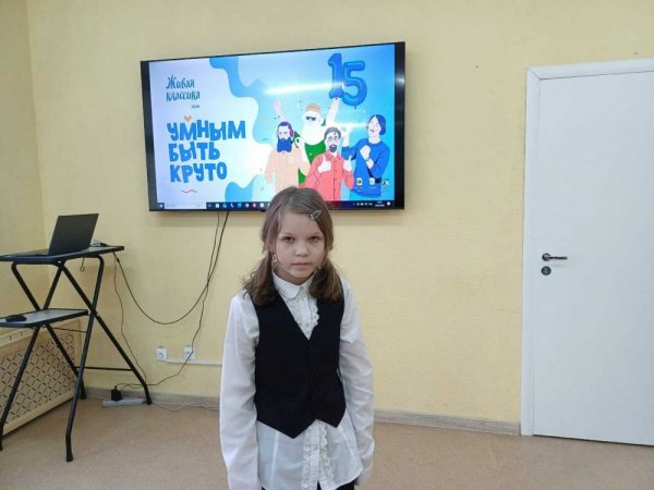 Сегодня Карпова Арина, обучающаяся 5 класса, приняла участие в муниципальном этапе Всероссийского конкурса юных чтецов «Живая классика». В рамках конкурса участникам предлагалось прочитать наизусть на русском языке отрывок из выбранного ими прозаического произведения, которое не входит в школьную программу по литературе.