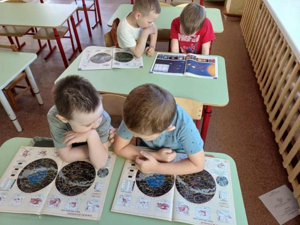 В понедельник ребята обустроили свой космодром, летательные аппараты и отправились в познавательное " Космическое путешествие". Они погрузились в историю освоения космоса: