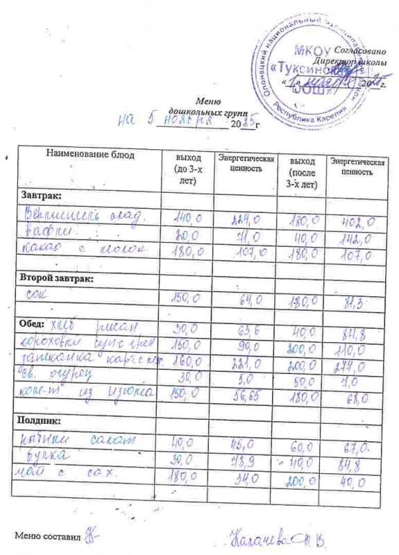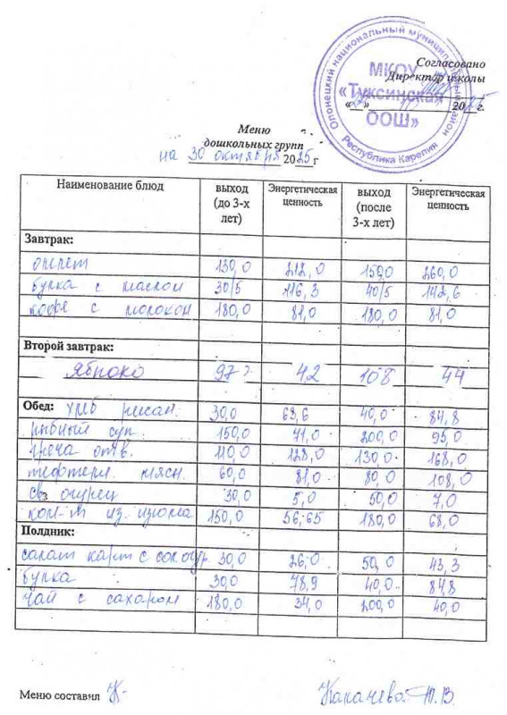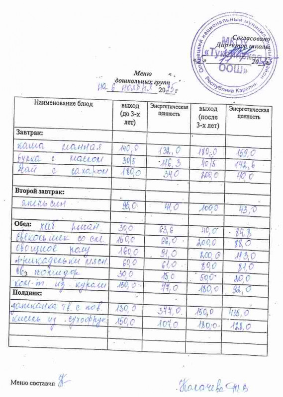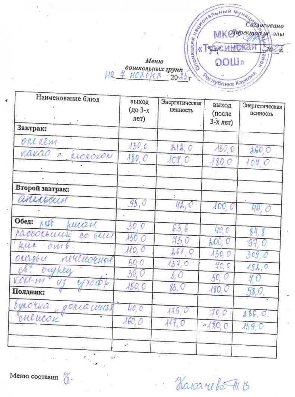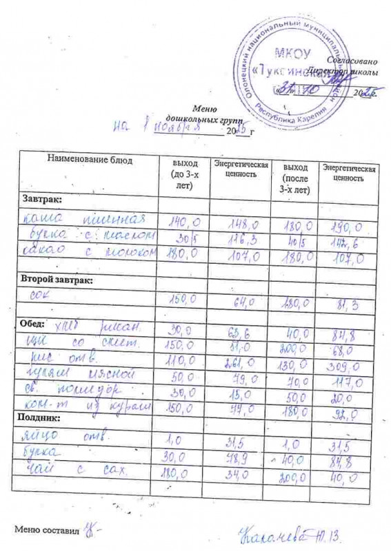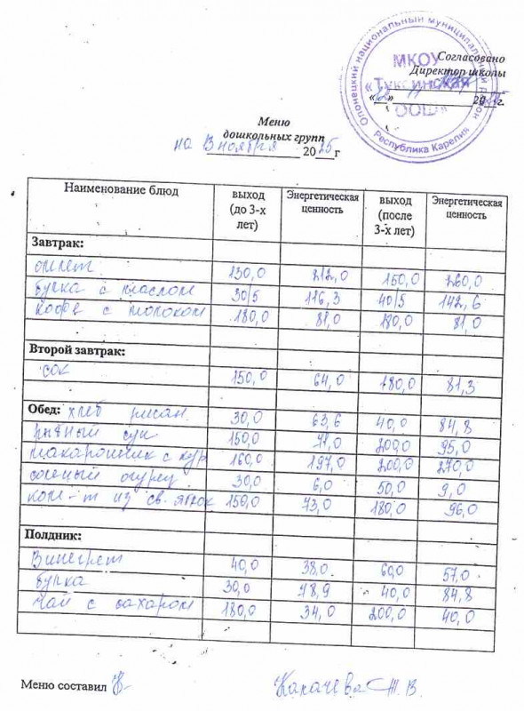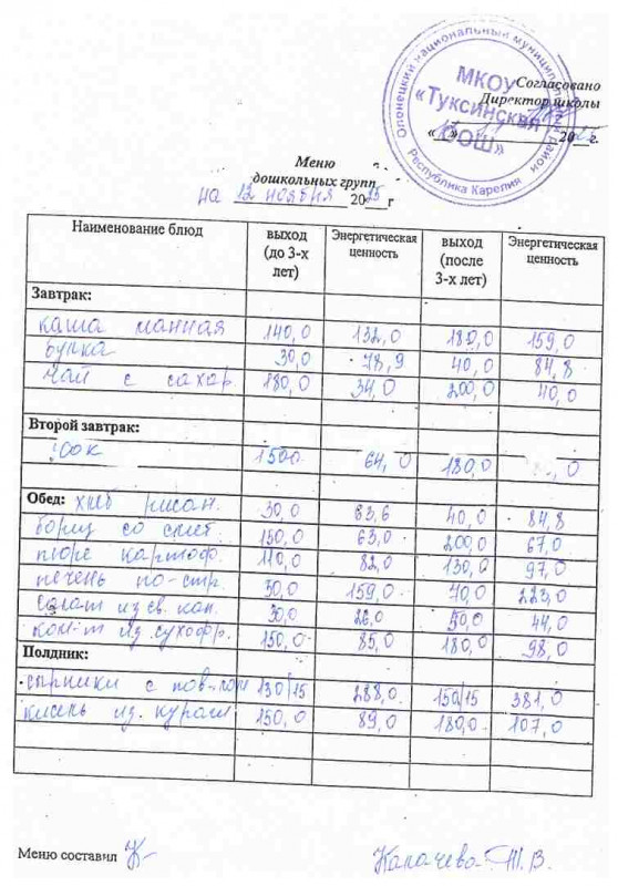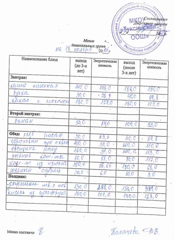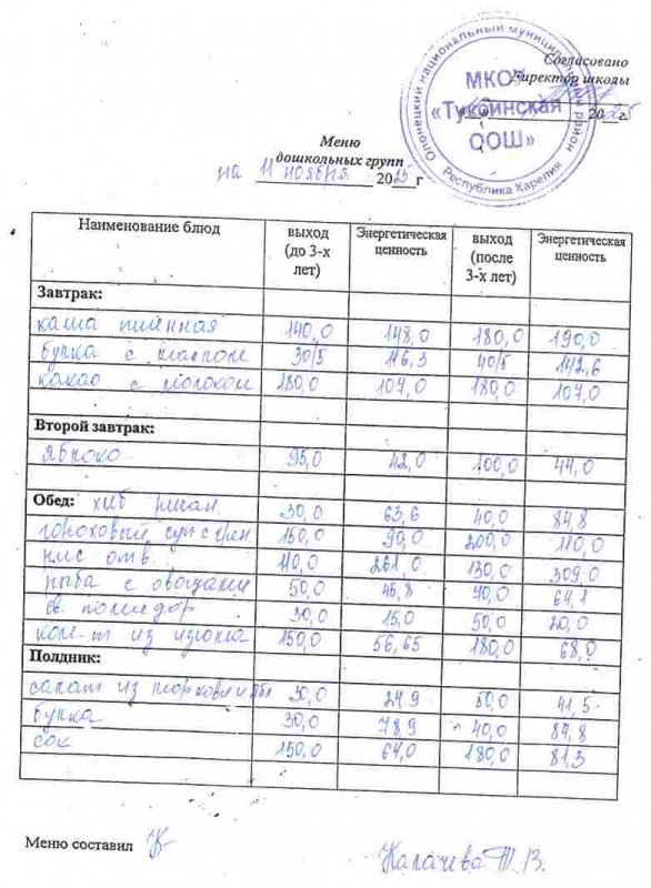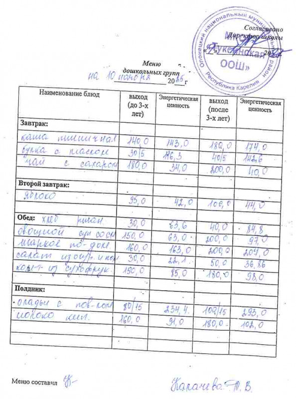 Примерное десятидневное меню для организации питания детей от 1,5 до 7 летний режим работы