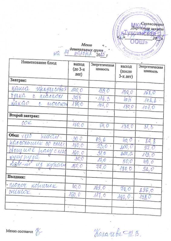 Примерное десятидневное меню для организации питания детей, сезон: весенне-летний, возраст от 3 до 7 лет