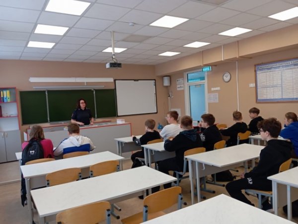14 марта 2024 г. инспектор по пропаганде ОГИБДД ОМВД России по Олонецкому району Осипова Любовь Сергеевна провела у учащихся 7 класса игру «Крестики нолики». Во время игры ребята решали интересные ситуации, разгадывали кроссворд, сочиняли стихи и узнавали знаки дорожного движения.