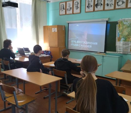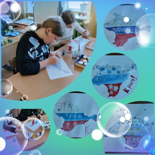 18 марта - День воссоединения Крыма с Россией. Традиционно в этот мартовский день во всех городах Республики, в Севастополе и во многих российских городах проходит множество торжественных и праздничных мероприятий. Для учащихся школы проведен исторический час «Воссоединение Крыма и России». Обучающиеся 5 класса познакомились с Севастопольской росписью. Создали открытки с изображением Крымского полуострова.