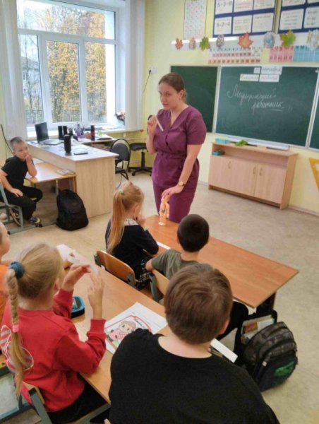 15 октября для ребят 1-4 классов в рамках Недели без турникетов прошла встреча с фельдшером Туксинского ФАПа Плотниковой Анной Олеговна. Анна Олеговна пришла не одна, а вместе со своим помощником -Кузей. После веселой танцевальной разминки ребята, разделившись на команды "врачей" и помощников, учились ставить диагнозы болезням, с которыми к ним обращался Кузя, определяли, кто из врачей может помочь в той или иной ситуации. В ходе игры ребята вылечили Кузе зубы, переломы, сердце, уши, зрение, брали анализы, вырезали аппендицит. Дети узнали о многих профессиях врачей, которые помогают людям сохранить здоровье. Каждый получил на память о встрече врачебную наклейку. Коллектив ребят и педагогов начальной школы благодарит Анну Олеговна за интересную и познавательную встречу.