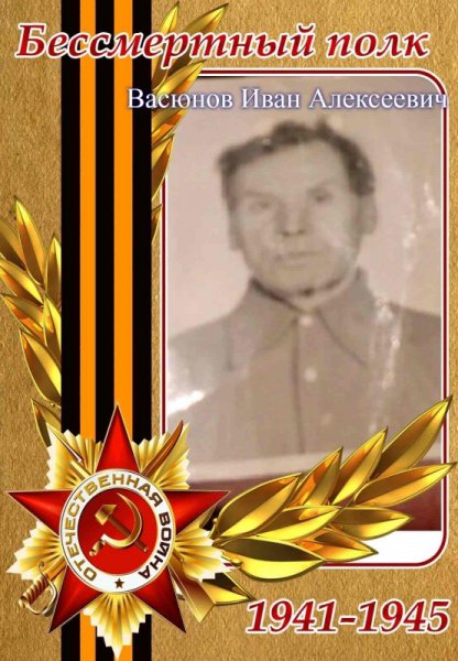 Наш прадедушка Васюнов Иван Алексеевич родился 21.05.1909 года. В августе 1941 года, в возрасте 32-х лет был призван в 891 стрелковый полк 189 стрелковой дивизии(I).
