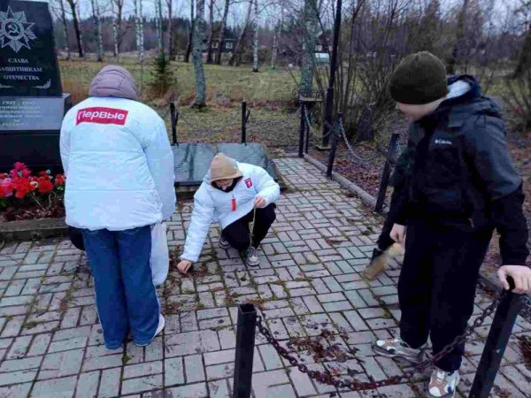 Добровольцы 7 класса совместно с участниками Движения первых убрали территорию памятника.