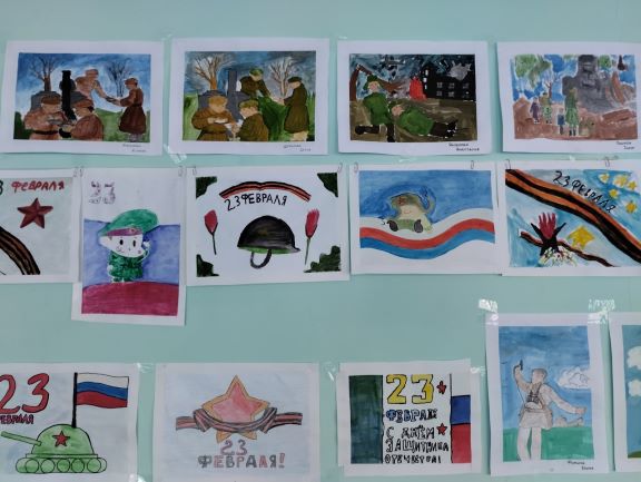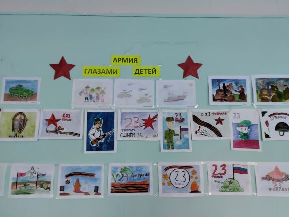 День защитника Отечества ежегодно отмечают 23 февраля. Отсчет своей истории он ведет с начала XX века. Подготовку к празднику обучающиеся нашей школы начали за долго до намеченной даты. Учащиеся 1-7, 9 классов нарисовали рисунки на военную тему. Педагоги начальной школы совместно с советником директора по воспитанию оформили выставку рисунков «Армия глазами детей» и выставку фотографий «Я горжусь….».