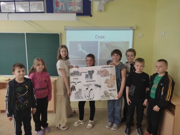 «Звериные семейства» в рамках регионального проекта «Эко- техно». Ребята узнали, что животные, как и люди, создают свои семьи, но у них это выглядит не всегда так, как у нас. Дети познакомились с названиями и с особенностями разных семейств животных. В конце занятия ребята оформили информационный плакат с семьями животных.