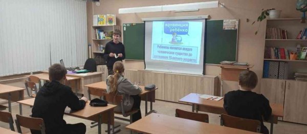 Учащиеся 7 класса провели правовые пятиминутки для учащихся начального звена, рассказав о истории праздника и о правах детей. 5-6 классы рассуждали о своих правовых возможностях на уроке "Конвенция о правах ребенка", учащиеся 7 и 8 классов продемонстрировали свои знания и навыки рассуждения на уроках "Под защитой закона" и "Правовой калейдоскоп". Девятиклассники в контексте темы написали правовой диктант.