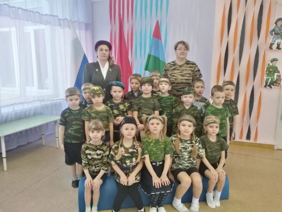 17 февраля в дошкольных группах проходило традиционное мероприятие, посвященное Дню защитников Отечества. Пройти серьёзные испытания предстояло всем ребятам. Прозвучал гимн, внесены флаги России и Республики Карелии, а также знамя Победы.Так состоялось открытие военной игры "Бравые ребята".Отряды "Моряки" ( младший возраст), "Летчики"( младше-средняя гр.), "Десантники"( старше-подготовительная гр.) прошагали строем, показав свои умения слышать команды при перестроении и выполнении марша.