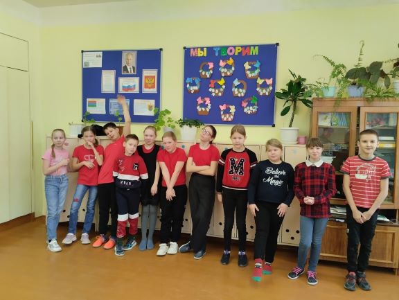 В преддверии весеннего женского праздника советником директора по воспитанию для учащихся и педагогов организована "Неделя в красках". Каждый день предложено приходить в одежде определенного цвета. Понедельник окрасился в красный цвет. Рекордсменами одежды красного цвета стали обучающиеся 2, 4 классов.