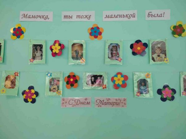 К празднику была оформлена фотовыставка «Мамочка, ты тоже маленькой была!» Ребята приняли активное участие, предоставив фотографии мам в детстве.