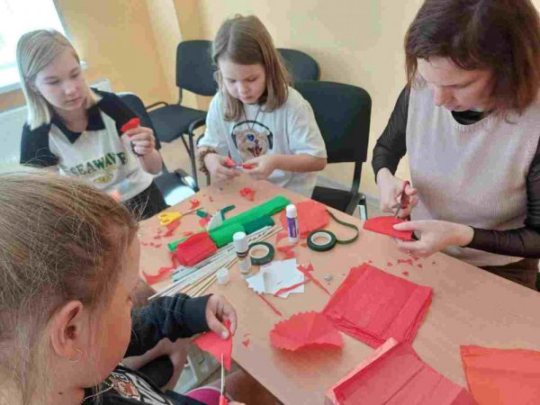 22 апреля в рамках акции "Весенняя неделя добра" для обучающихся и педагогов прошел мастер- класс "Цветы памяти". Занятие по изготовлению гвоздик ко Дню Победы для наших участников стало не только увлекательным, но также важным шагом к формированию личности человека, его отношению к исторической памяти и культурным традициям России. Спасибо волонтёрам Чириковой А.Г. и Лумпиевой Н.Н. за проведённое мероприятие!