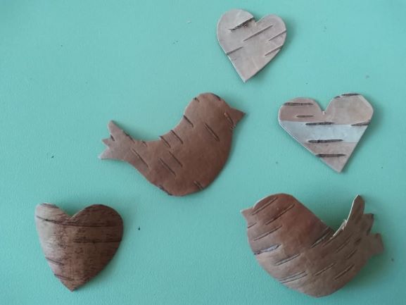 Весенняя неделя добра в дошкольных группах началась с изготовления талисманов удачи для бойцов СВО из бересты - птичка и сердечек.