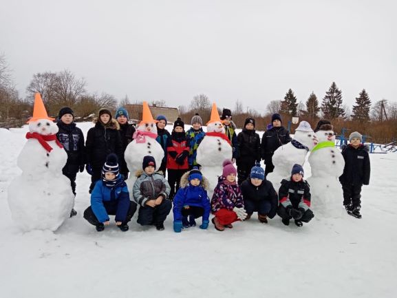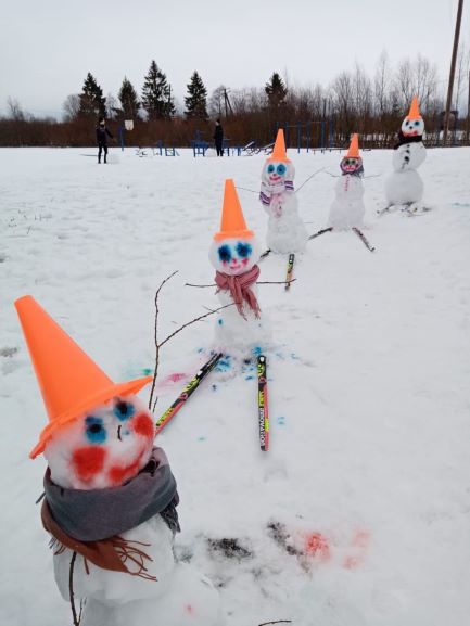 Во Всемирный День Снеговика обучающиеся 1-9 классов слепили команду забавных снеговиков- лыжников.