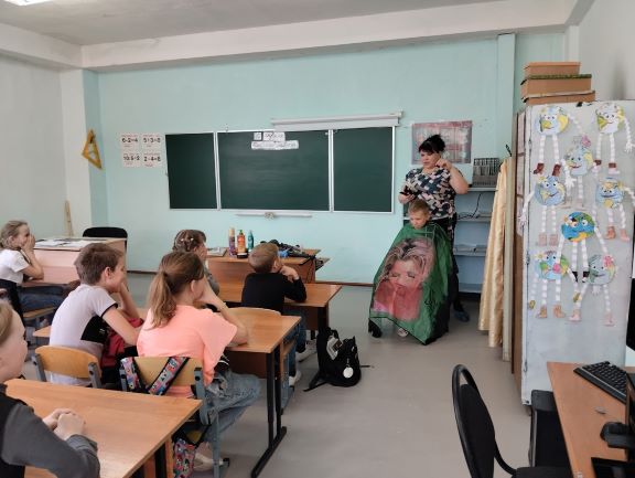 14 апреля в рамках Всероссийской акции «Неделя без турникетов» для обучающихся 4 класса прошёл классный час, гостьей которого стала одна из мам класса - Ильина Анна Владимировна. В ходе мастер-класса она рассказала ребятам о профессии парикмахера, познакомила с инструментами, которые помогают сделать красивую прическу, ответила на вопросы ребят по уходу за волосами. Мы благодарим Анну Владимировну за интересную и познавательную встречу.