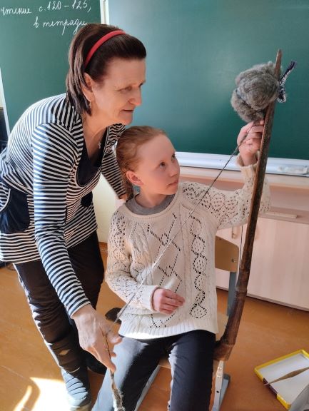 В пятницу у ребят 1 и 4 классов была редкая возможность познакомиться с ремеслом, которым в деревнях владели все представительницы прекрасного пола от девочек до бабушек. Помогла нам "окунуться" в прошлое наша гостья из Коткозера, мастерица Букина Валентина Николаевна. Она рассказала и показала ребятам, как простая шерсть в умелых руках превращается в тонкую нить. Дети узнали много интересного о прялках, как и кто их делал, как украшали этот важный и нужный предмет в любом доме. Ребята с удовольствием поучаствовали в МК, поработали с чесальными картами, прялкой, шерстью и веретеном. От всего сердца мы благодарим Валентину Николаевну за уникальную возможность познакомиться с ремеслом прядения шерсти.