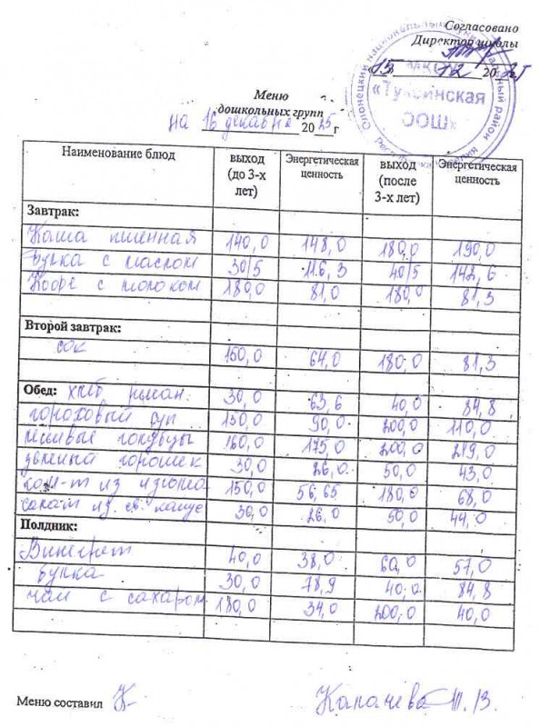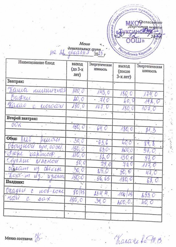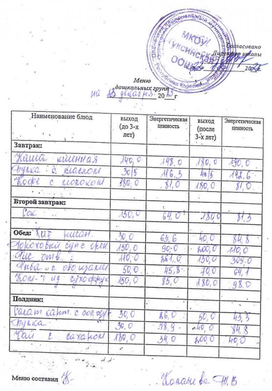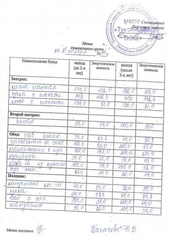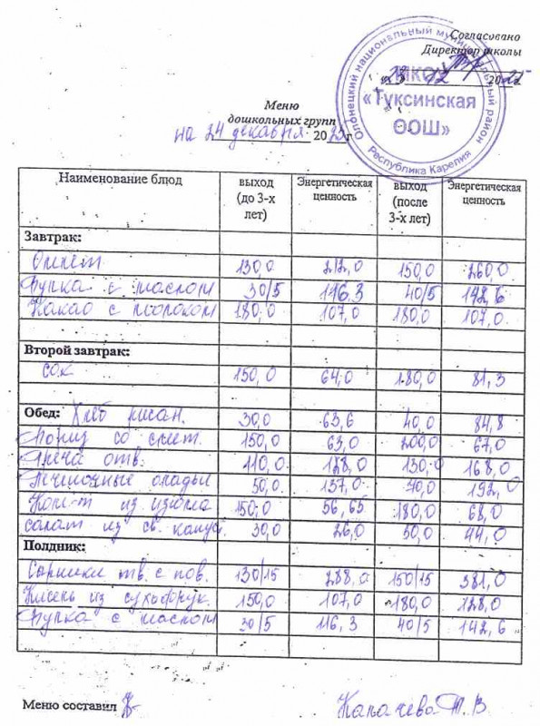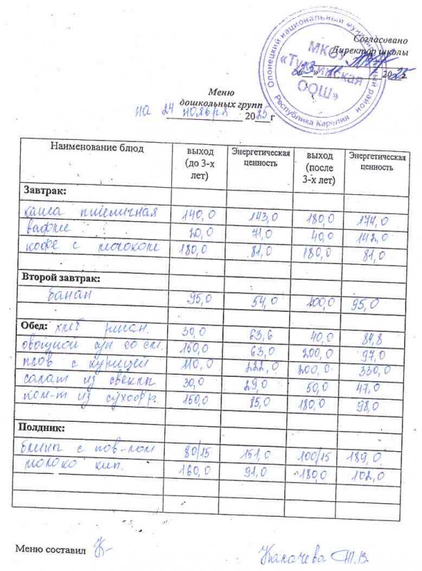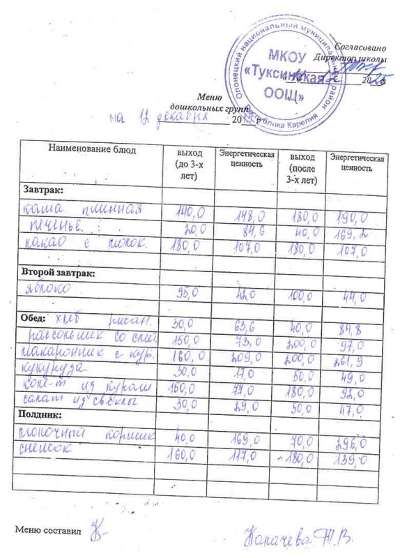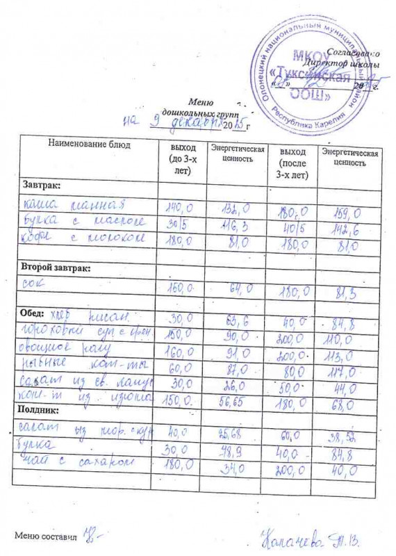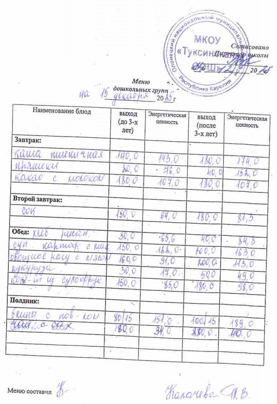 Примерное десятидневное меню для организации питания детей от 1,5 до 7 летний режим работы