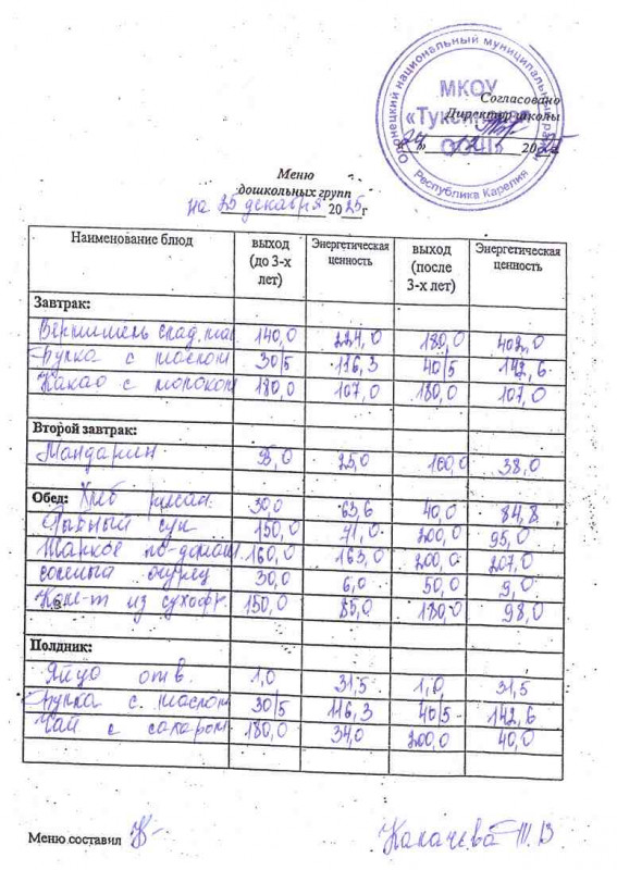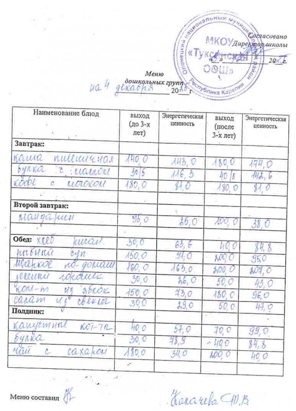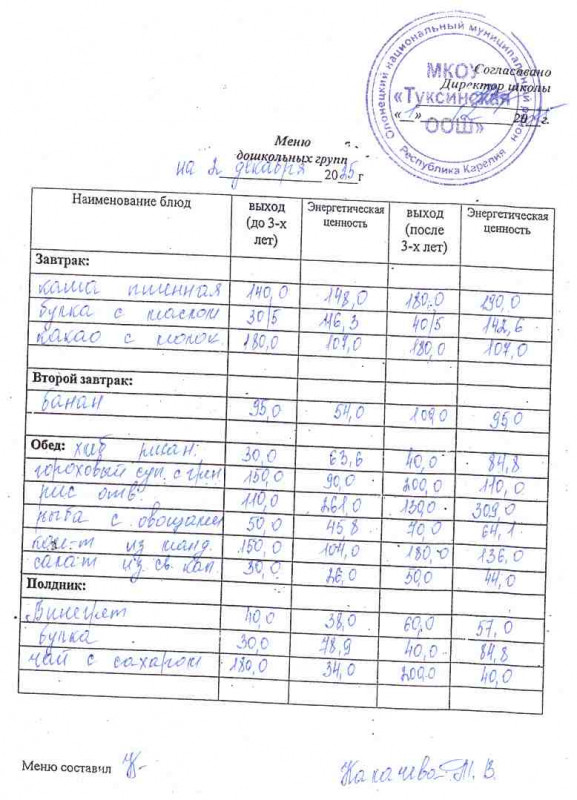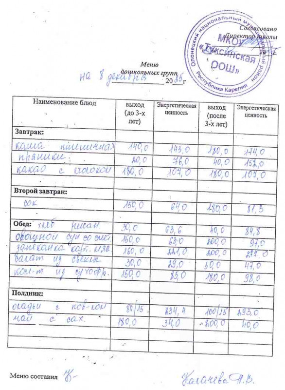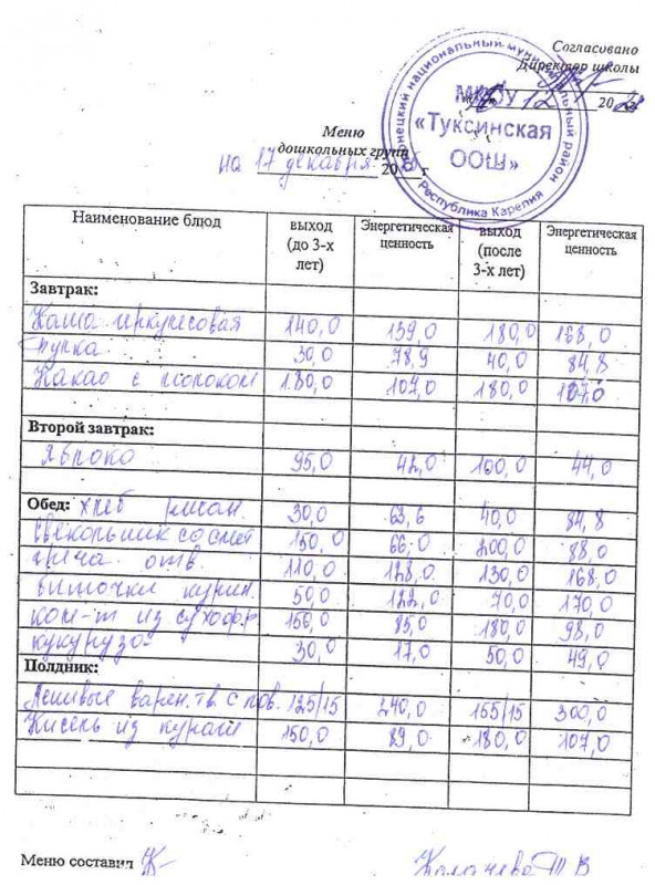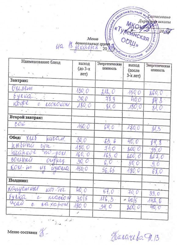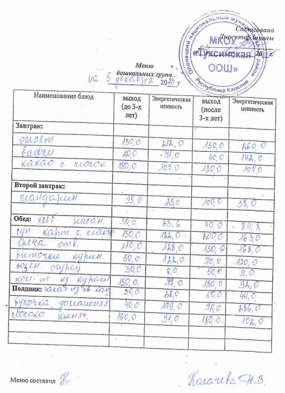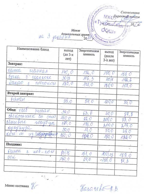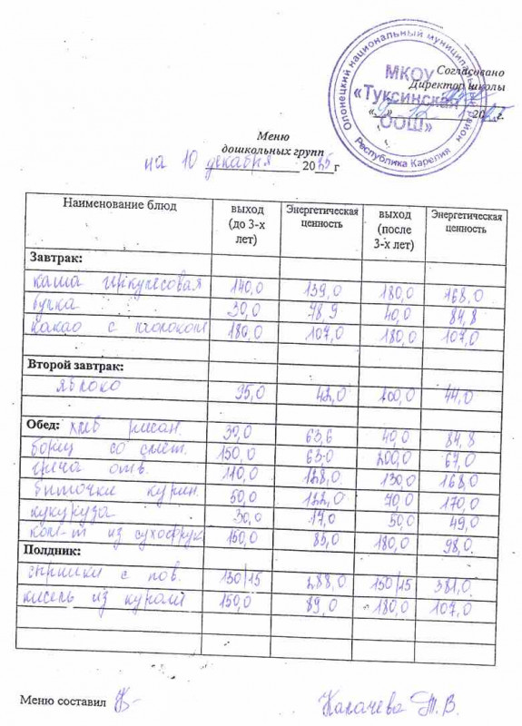 Примерное десятидневное меню для организации питания детей от 1,5 до 7 летний режим работы